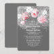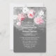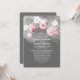 Bröllopbjudan med rosa ros, vita rödblommor, små löv och baby blommar. Light grått chalkboard inbjudan med genomskinliga vita kronsilhuetter från vattenfärgsfärgat stänk. Rustisk romantisk bröllopsinbjudan till blommigten för ditt trendig och det ursprungliga bröllop.