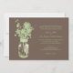 Perfekt för en bröllop vid land stil eller kanske du bara kärlek Mason Burk! Gamla vintagen Mason Burk hänger på krok med vilda blommor från land. En KRAFT BROWN-bakgrund med ljust grönt (sage) teckning i Mason Burk fylld med vilda blommor. Om du har några frågor om den här designen eller vill ha en ändring i färg, skicka e-post till mig paula@labellarue.com Sök även efter OSA-, RECEPTION- och GUEST SEATING-kort som matchar varandra!