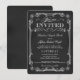 Vintage skol tavla bröllopsinbjudningar med rundade hörn. Vackra fina virvlar, rullar och 1800-talets viktorianska blomster motiv med elegant svängig typsnitt blandat med retro krita kalligrafi och lockig ram på svart tavla bakgrund. Perfekt för eleganta formella kyrkbröllop eller rustika landsbygd bröllop, gods, eller trädgårdsbröllop med en touch av trendig modern sofistikerad stil för traditionella par. Lägg bara till brud och brudgummens namn och dina egna bröllopsdetaljer för att skapa looken av lyxiga inbjudningar till ett överkomligt pris. Lättanvänd mall kan modifieras för formella eller semi-formella bröllop. Klicka på Anpassa för att ändra typsnitt och teckenstorlek. Vänligen kontakta oss för hjälp med anpassning om du behöver ytterligare utrymme för dina bröllopsdetaljer. OBS: Storlek för små (