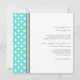 Bröllopsinbjudningskort i grått för elegant och contemporary, turkospakelblått, lätt pastellfärgad grönt och vita retrocirklar och diamanter geometriskt mönster. Anpassa dessa inbjudningar med din bröllop-information. Finns i matchande produkter för alla dina bröllop behov.