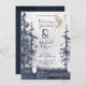 Söt kallblodiga inbjudningar till hemerbröllop med subtilt blue och tan färg, ladan uggla och en skog eller ett berg. Perfekt för ett fall- eller vinterbröllop med skogar.