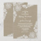 Bröllopsinbjudningar i Burlap och Blommigt Snöre - har en tryckt bakgrund med en dekorativ blommigt snöre mönster överst och grund till ge inbjudan, ett land- eller jordkänsla eller vintage tema.