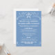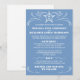 Den här bröllopsinbjudningen är ljusblå med vita kalligrafdekorationer och vit text. Anpassa stjärnan i huvudet med initialerna för framtida brud och trimning.