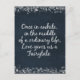 Vintage Fairytale Kärlek citerar bröllopsinbjudningar. Vintage svart kritbakgrund med vit och grått bokeh ljus kant, med det inspirerande kärlek-citatet: "Gång in medan kärlek ge oss en saga i mitten i ett vanligt liv"