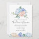 Romantisk bröllopsinbjudan till blommigt med dammiga blues och pinkar.