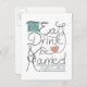 Bröllopsinbjudan för att spara datumet för en speciell tillställning. Roliga bokstäver med ytterligare designelement som säger: Ät drick och bli gift. Hjärtform ingår för att betona romantiken.