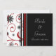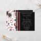 Julbröllopsinbjudningar i klassiskt rött, svart och vitt med elegantens snöflingdesign, Anpassade med dina uppgifter om bröllop. Finns i frimärke, kuvert, etiketter och kort som motsvarar vintertid.