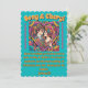 Psychedeliska färger bröllopsinbjudan bild som visar ett ungt par i mitten av en hjärtram. Omgiven av flerfärgade blommor som frammanar en fantasimiljö. Text och element kan läggas till eller tas bort enligt dina behov.