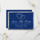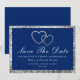 Om du firar bröllopsjubileum och vill ge vänner och familj lång varsel, då är dessa spara datum-inbjudningar för bröllopsjubileum idealiska. Dessa är så lätta att anpassa - följ bara textfälten. Designen har silverhjärtan och färgen är i kunglig blå.