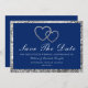 Om du firar bröllopsjubileum och vill ge vänner och familj lång varsel, då är dessa spara datum-inbjudningar för bröllopsjubileum idealiska. Dessa är så lätta att anpassa - följ bara textfälten. Designen har silverhjärtan och färgen är i kunglig blå.