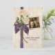 Rosbukett med pärlor och lila band/slinga på damastbakgrund.