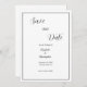Ett vackert svart vitt skript kalligrafi minimalistiskt bröllop sparadatum kort.