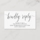 Detta är det moderna vackra bröllops-RSVP-kortet, i svart kalligrafi, för ditt bröllopsinbjudningssvar eller festfirande inklusionskort. Du kan ändra typsnittets färger och lägga till dina bröllopsdetaljer med hjälp av Zazzles textredigeringsverktyg. #TeeshaDerrick