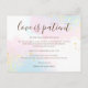 När omständigheterna gör att det tyvärr har blivit nödvändigt för dig att ändra datum för ditt bröllop, så finns här ett bekvämt sätt att låta dina gäster veta om din ändring av planerna och det nya datumet så snart som möjligt. Denna eleganta design har akvareller i turkosblått och rosa i bakgrunden med guldblekare. All text på båda sidor kan enkelt anpassas.