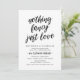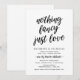 Detta är det moderna enkla rustika svarta kalligrafiska bröllopsinbjudningskortet (Inget fancy, bara kärlek). Ett perfekt kort för att inbjuda din älskade familj och gäster till tillkännagivandet av er bröllopskavalkad och firande av mottagningen. Lägg till era firandedetaljer i matchande typsnitt / bokstäver.
