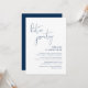 Detta är bröllopskavalkadens inbjudningskort, med minimalistisk / minimalistisk klassisk marinblå skriptdesign (låt oss festa)