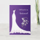 Vit bröllopsklänning, silverblommig fjäril på lila bakgrund brudtärna förfrågan kort.