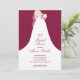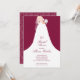 En brud i sin bröllopsklänning på en tranbärsred (eller valfri färg) bakgrund, perfekt för eleganta bröllopsdusch-inbjudningar. (Rosmönster på baksidan kan raderas.) MATCHANDE artiklar i vår butik.