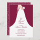 En brud i sin bröllopsklänning på en tranbärs-röd (eller valfri färg) bakgrund, perfekt för eleganta bröllopsinbjudningar. (Rosmönster på baksidan kan raderas.) MATCHANDE artiklar i vår butik.