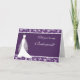 Elegant vit bröllopsklänning på purpur bakgrund kantad med bladigt damastmönster Brudtjänst begäran hälsningskort.. Du kan justera texten enligt dina krav.