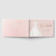 Elegant bröllopsgästbok med vattenfärg vit bröllopsklänning med gnistrande falskt guld glitter gästbok skrift på rosé rosa bakgrund.