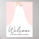 En brud i sin bröllopsklänning på rosa (eller valfri färg) bakgrund, gör ett perfekt välkomstskylt för din bröllopsfest. (Rosmönstret kan raderas.) MATCHANDE artiklar i vår butik.
