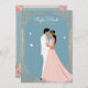 bröllopskort design, enkel och elegant, parnamnet är "MEGHA & NEELANSH", blekblå eller blekrosa färg