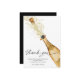 Vårt bröllopskort för tack till glada champagnepar har en modern design med en falsk guld champagneflaska. Detta kort är det perfekta sättet att uttrycka din tacksamhet till dina nära och kära som har hjälpt till att göra din förlovningsfest ännu mer speciell.