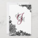 Elegant svart snöre över vit bakgrund med högtidligt visitkort för bröllopsinbjudan med monogram och vin.