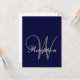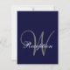 Kort för mottagning med monogram. En elegant marinblå bakgrundsfärg med en grå initial i ett elegant skrivstil. Design av Elke Clarke© . Anpassa med ditt monogram och personlig information samt dina bröllopsfärger genom att välja alternativet "anpassa". En mångsidig design, perfekt för att skapa dina egna unika mottagningskort med din färgkombination och monograminitial.