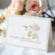 Välkommen din framtida svärmor med kärlek och tacksamhet med detta vackert designade bröllopskort. Prytt med ömtåliga elfenbensfärgade blommor och gyllene botaniska accenter på en krispig vit bakgrund, är detta kort ett hjärtligt sätt att uttrycka uppskattning på din stora dag. Den eleganta skrivstilen och den varma färgpaletten gör det till ett perfekt val för höstbröllop och romantiska teman. Insidan är tom för ditt personliga meddelande.