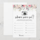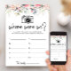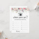 Kortet med Blush Blommotiv "Var Var Vi" Bröllopsdusch Spelkort erbjuder anpassningsbar underhållning med sin blommiga design med rosa rosor. Perfekt för bröllopsfester kan gästerna minnas och gissa var olika händelser inträffade, vilket lägger till en interaktiv del i firandet.