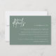 vår anpassade infogningskort med detaljer har enkel, handskriven stil - perfekt för att informera dina gäster om ytterligare detaljer för ditt bröllop eller evenemang. Denna artikel är en del av vår bröllopssvit Hunter H100, vänligen besök vår butik för matchande produkter.