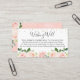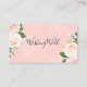 Sött bröllopskort med rosafärgade blommor och önskebrunn i storlek som ett visitkort. Designen har en blomsterarrangemang och falska guldglittrande prickar.