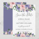 Detta eleganta bröllopskort för att spara datum har en vacker akvarell i rosé och lavendelblommor. Designat för att matcha vår Delight-brölloppskollektion. Personifiera det med dina detaljer enkelt och snabbt genom att trycka på knappen för anpassning och sedan ändra och formatera stil och placering av texten. (c) The Happy Cat Studio