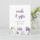 Kort & Present Skylt: Denna boho lila vildblomma kort & present skylt är 5x7 och perfekt att placera vid er bröllopskort & present bord.