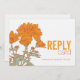 Blommig krysantemum grafisk blomritning med grafisk färgöverlägg höst bröllop svarskort. Redigera dessa kort med dina egna ord. Perfekt för sensommar, tidiga höstbröllop, eller en orange, grön, brun och vit bröllopsträdgård med blomtema, bröllop, förlovning eller årsdag. Inbjudningar och andra matchande bröllopsartiklar finns tillgängliga. Unik teckning och grafisk konst och design av Sarah Trett. www.sarahtrett.com för www.mylittleedenweddings.com