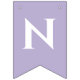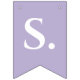 En enkel flaggor banner för en lavendelbröllop, med orden "Mr. & Mrs." och det nya parets efternamn och 3 hjärtan. Texten är i vita versaler på lavendel (ljuslila) bakgrund, hjärtana och et-tecknet är lavendel på vit bakgrund.