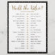 Enkel svart-vit layout med guldprickar, "Skulle hon hellre"-lek, kontrollista-lek. Bakgrundsfärgen kan anpassas.