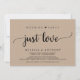 Vacker ingenting fancy bara kärlek fest firande, Bröllopslöfte kungörelse / inbjudningskort, i Rustik bondgård brun kraft design. Detta är perfekt för din bröllopsfest och efterbröllopsfirande. Lägg till dina detaljer i matchande teckensnitt / bokstäver.