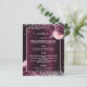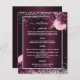 En elegant, glamourös bröllopsmeny. En djup burgunderfärgad gradientbakgrund, dekorerad med falskt silverglitter, gnistrar och rosa och burgunderfärgade blommor. Vit text. Anpassa och lägg till menyn.