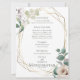 BRÖLLLOPSMENY | Akvarellblommor i rosa och vaniljvita blommor - en geometrisk guldram i terrariestil dekorerad med botanisk grönska och blomsterbuketter. Baksidan har en kompletterande koordinerad färg. Anpassa text, typsnitt, färg och storlek. Originalkonst skapad för BarefootBride™ av © WhimsicalArtwork™ - Det här är en del av en komplett bröllopspappersserie med matchande bröllops-, baby shower- och annan evenemangspappersserie.
