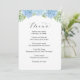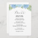 Bröllopsmeny med blå blommande hortensior meny