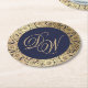 Bröllopsmonogram Navyblå Guld Vintage Elegant Underlägg Papper Rund