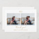 Detta moderna guld- och vitfärgade dubbla fotots bröllop tack-kort har handskrivna bokstäver och ett enkelt monogram.