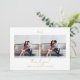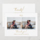 Detta moderna guld- och vitfärgade dubbla fotots bröllop tack-kort har handskrivna bokstäver och ett enkelt monogram.