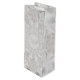 Bröllopsmottagningen vin flaska i presentsäck. Enkel elegant med anpassningsbar tryckt grått silver-vit guld-design. Typografi kan vara personlig. Upphovsrätt Marg Seregelyi Fotography.