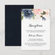 Det här kalligrafkortet för bröllopsmottagning för vinter-blommigt är perfekt för guld bröllop. Utformningen har vackra, handmålade mörk blått, blå, marinerade, rosa, blommor, blommor från guld och blad av grönt, buntade i elegant bouquets.