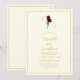 Tidslös elegans: Traditionell minimalistisk röd ros bröllop med manustypografi och elfenbensbakgrund i guld.