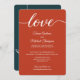 Trendig, elegant, varm jordton bröllopskolorpalett i bränd orange, grön vigsel bröllopsfest inbjudan. Denna design har ett modernt "Love" kalligrafiskrift. Anpassa denna vigsel bröllopsfest inbjudan med brudens och brudgummens namn och all information om vigseln och bröllopsfesten. Inkludera även en bröllopswebbplats för RSVP. Denna snygga och eleganta layout är lätt att anpassa. För ett höstbröllop.